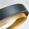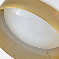 Illuminate your dining space with our vintage gold-finished iron mid-century-inspired one-light fixture. This elegant ceiling light features a striking black outer ring that adds depth and contrast, making it a perfect centerpiece for your table.