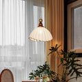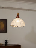 Pendant Light Fabric Shade Wooden Ceiling Lamp